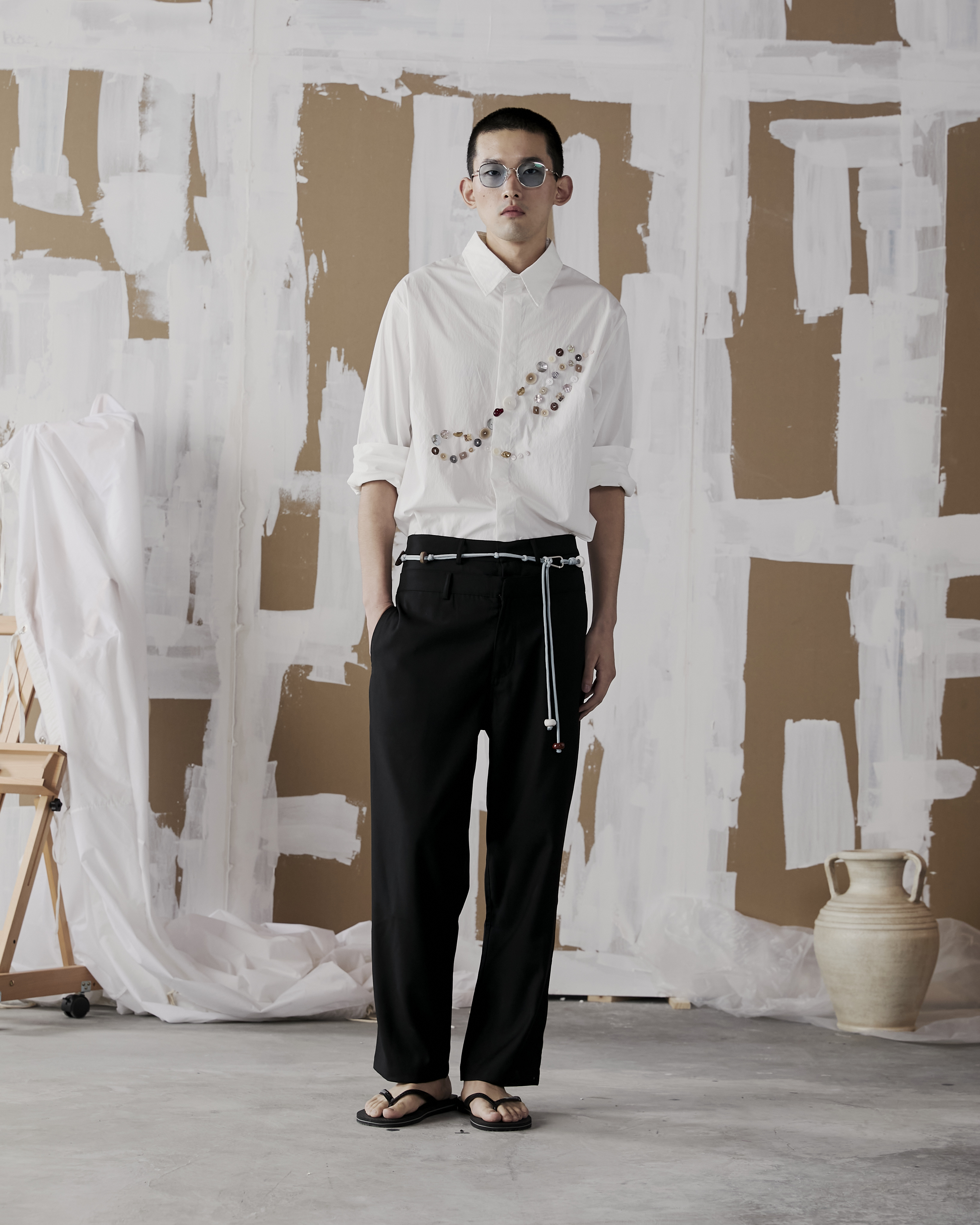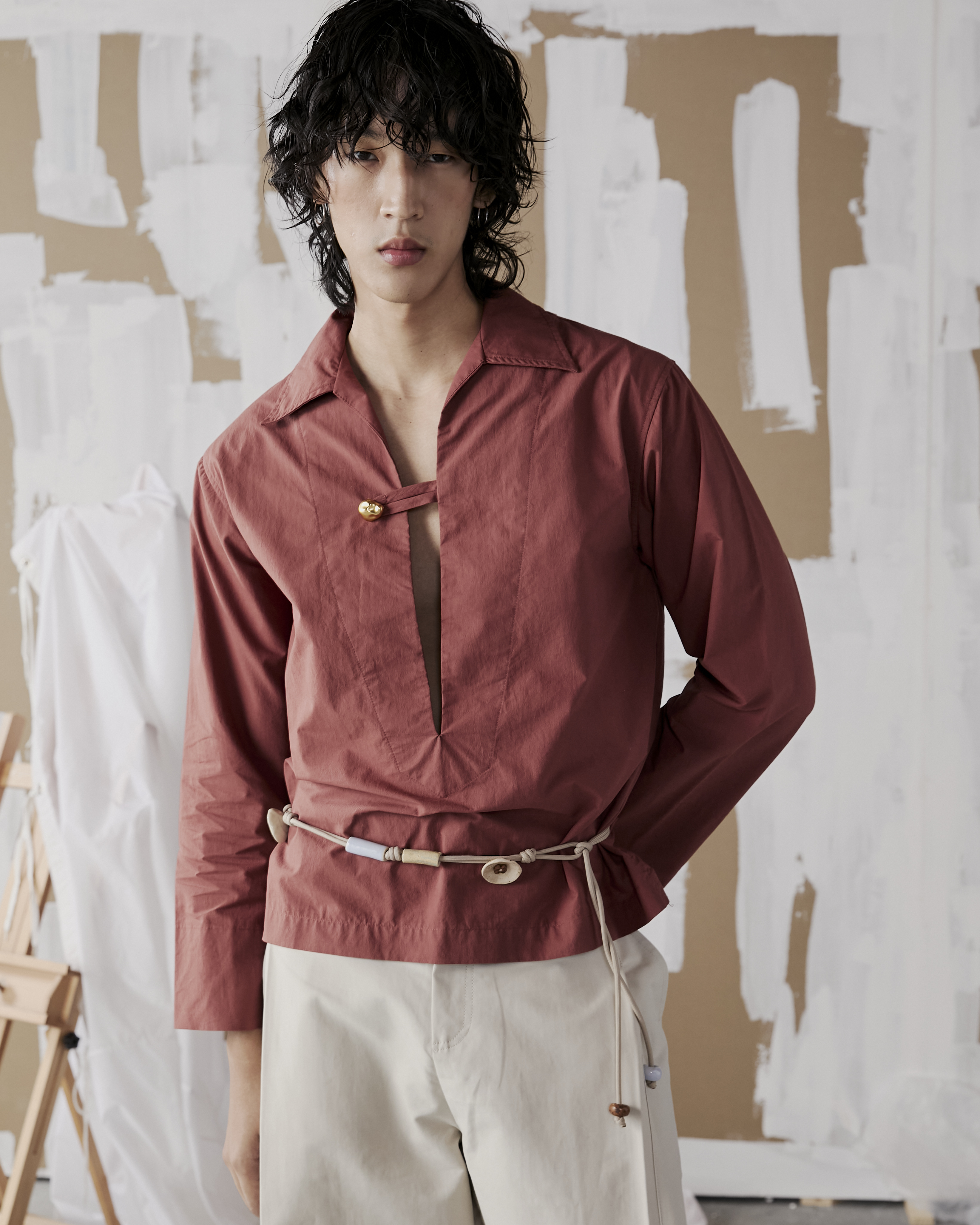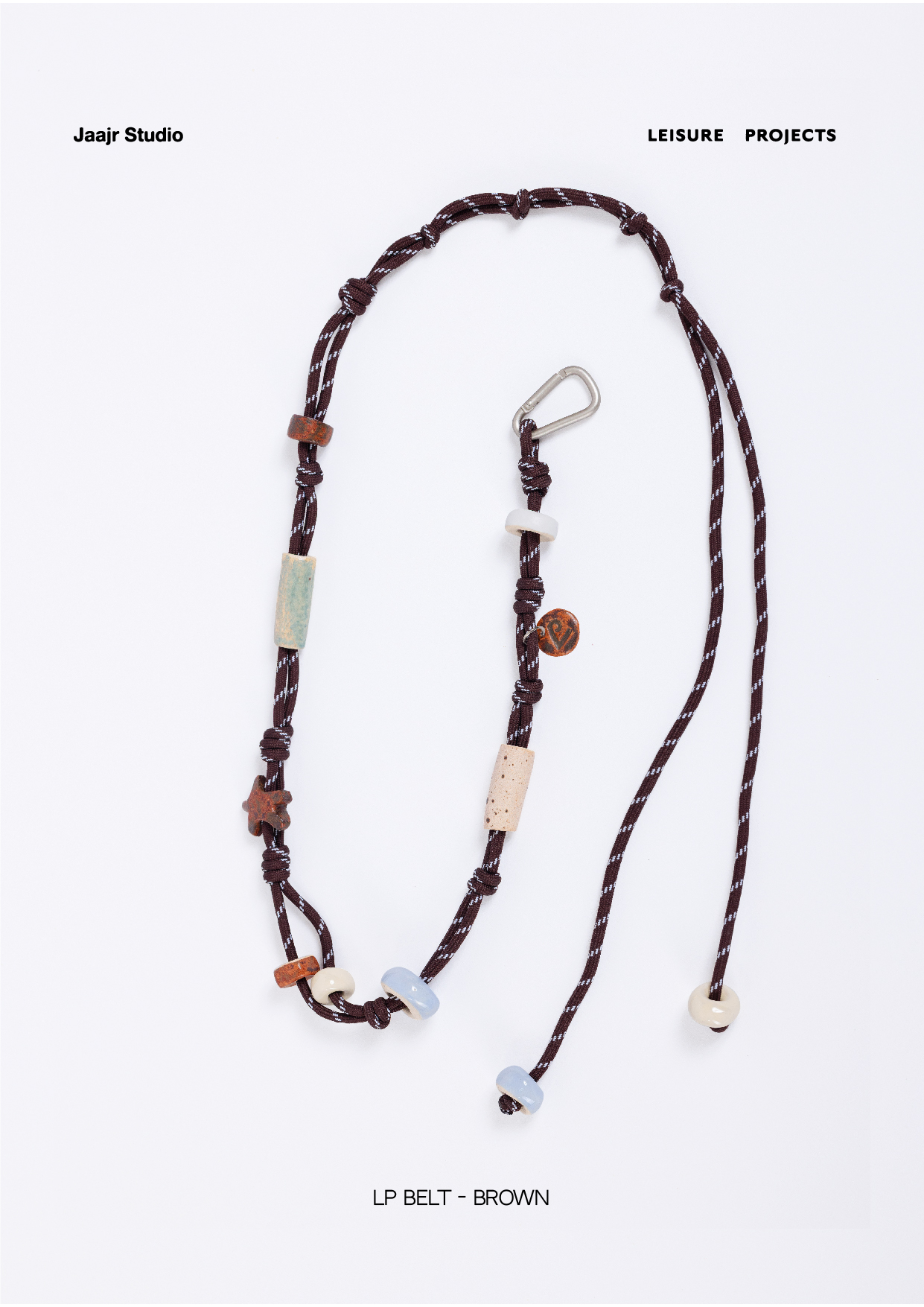 Ceramic beads tied belt . As part of Leisure Projects AW25 Collection ‘Terra Mare’ This jewellery collection is a collaboration between Jaajr Studio and Leisure Projects.