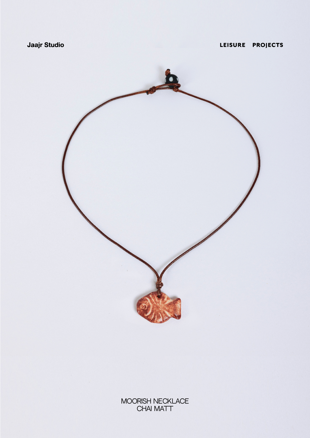 Stoneware ceramic charm with nylon necklace. As part of Leisure Projects AW25 Collection ‘Terra Mare’ This jewellery collection is a collaboration between Jaajr Studio and Leisure Projects.
